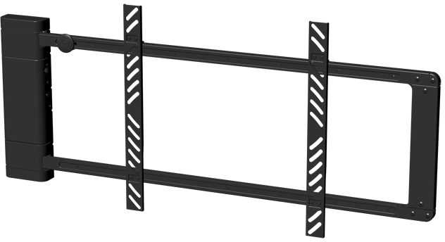 Our medium motorized swing mount is a unique mounting technology alternative to today's manual articulating mount. SA52 can fine-tune the viewing angle of a TV at the touch of a button, from the comfort of your favorite chair, by varying the swivel angle up to 90°. This allows the TV to be viewed from different viewing locations such as the kitchen, or an adjacent game room. At a 1.7" profile, the SA52 is perfect for today's slim LCD and LED TVs. With the optional ControlWand (Wi-Fi adapter), a hand held device (iPhone, iPod) can be used to control the mount via auto, manual, and gyro modes. In the gyro mode, the motion of the mount is synchronized with the motion of the hand held device without having to push a button.