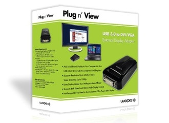 The Warpia Plug n View External Display Adapter enables you to connect your PC to an external display via USB. With this convenient design, you can connect up to 6 displays to a computer without installing extra video cards. Once the driver has been installed, the USB attached display will be enabled immediately. There is no need to reboot the operating system before or after plugging in the extra display. The Plug n View even uses your systems USB port for power no extra power adapter needed.