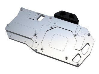 Aside from the GPU, memory and voltage regulators are cooled. An extremely fine microstructure sits right above the GPU and guarantees, assisted by a low residual base thickness, optimal cooling performance. Integrated isolating stand-offs allow easy mounting of the cooler.