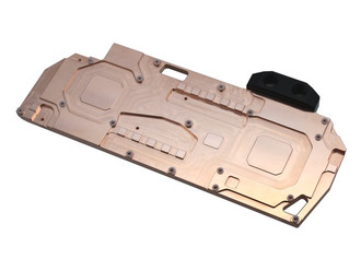 Aside from the GPUs, memory and voltage regulators are cooled. An extremely fine microstructure sits right above the GPUs and guarantees, assisted by a low residual base thickness, optimal cooling performance. Integrated isolating stand-offs allow easy mounting of the cooler.