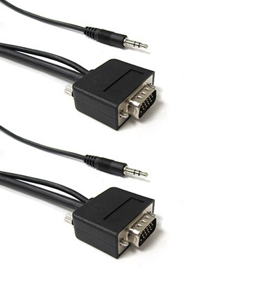HD15 Male to HD15 Male with Audio Weltron Low Profile SVGA cable. Has your video and audio in one cable. This cable features a low loss, double shielded design. Signal integrity is further enhanced by ferrites cores that filter out noise. Great for connecting high resolution analog displays. Use this cable for video presentations, classroom environments or just for organizing your work area for maximum comfort and efficiency. Low Profile connector for easy installation.