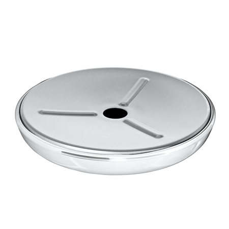 - Attractive soap dish for the storage of hand soap - Made of high ceramic - Special shape - Chrome plated surface - High-grade, satinised stainless steel combined with plastic.