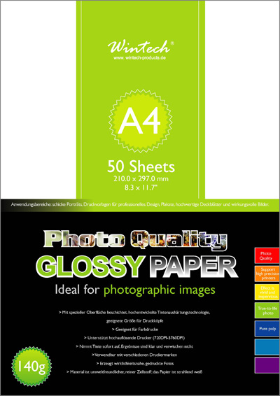 Photo Paper Glossy 140g - A4 especially suited for portraits, manuscripts, high quality manuscripts, lifelike high quality prints.