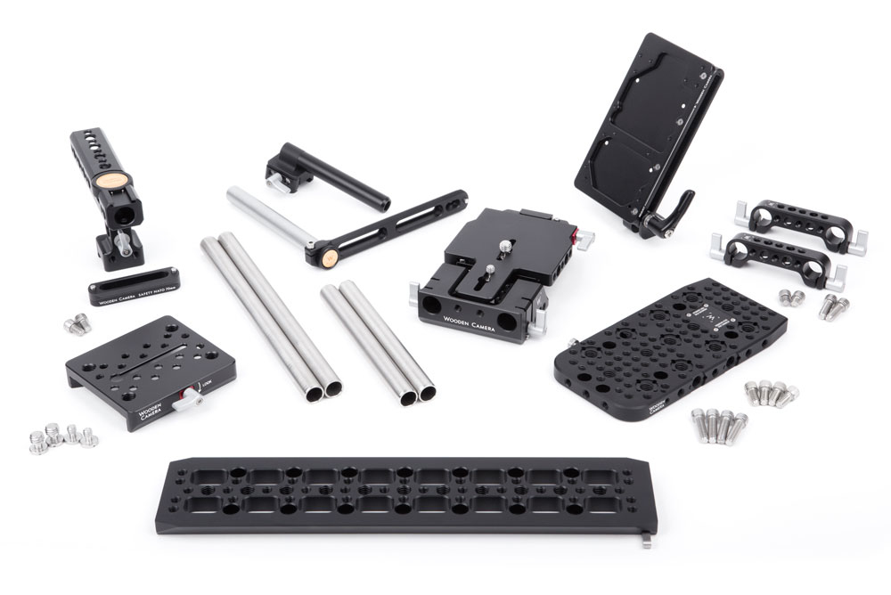The Sony FS7 Camera Accessory Kit (Pro) is a professional camera support package designed for the Sony PXW-FS7 camera. The FS7 accessory package includes: Top Plate (FS7), a top mounting camera cheeseplate for accessory attachment, Quick Base (FS7), a camera baseplate for holding the two 15mm Rods (9”) at the correct lens height, NATO Handle Kit (Plus, 70mm), a quick release handle that attaches to the top plate, has a rotating top grip, multiple mounting points for accessories, integrated shoe mount, and a 15mm/19mm rod opening, UVF Mount (FS7, No Clamp) for holding EVFs & LCDs, Dovetail Clamp for mounting to an ARRI standard dovetail like the included Safety Dovetail (12”), Rod Clamp (15mm LW), a mount that holds a second set of 15mm Rods (6"), and the Battery Slide, an adjustable battery plate for attaching a V-Mount or Gold Mount plate to the camera which attaches via a second Rod Clamp (15mm LW).
