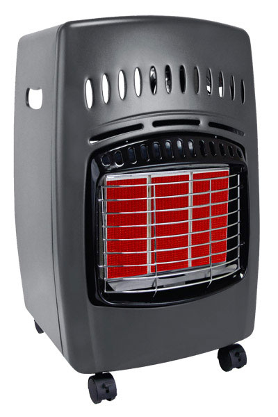 The Comfort Glow GCH480 cabinet heater is the perfect utility heater. It runs off a 20 lb. cylinder tank that tucks in the back. 6, 12, 18K btu heat choices you manually set. It has an ODS safety shut-off built in. This heater on wheels unit is a must for the garage or patio.