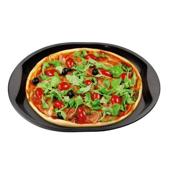 Xavax - Plaque de four pour Pizza "Pizza-Cross-Platte", noir acier avec couche anti-adhésive, permet la préparation de Pizza avec fond très croustillant, les trous permettent l'évaporation de l'humidité excéssive, largeur: 390 mm, profondeur: 340 mm, haut