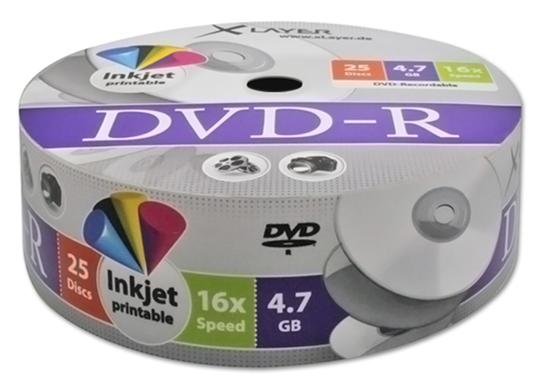 DVD-R, 4.7GB, 16x, Inkjet Printable, 25, Shrink Pack