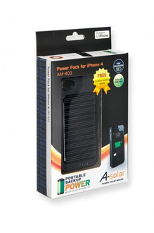 To ensure that you can keep using your iPhone, A-Solar developed the iPhone Solar Charger for iPhone 4. The external battery pack can be charged via the solar cells or by AC charging.