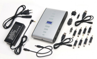 Solar Laptop Charger, 13200mAH Li-Ion, 2.5W Solar Panel, 2 x USB, 16V /19V/ 21V VDC & 5V USB Out, LCD