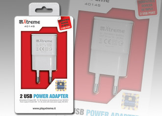Power adapter 220V with double USB exit 5V. For all devices with input current 5V.