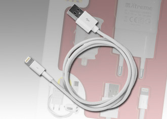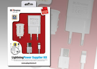 Useful kit for charging all devices iPad 3, Mini iPad, iPhone 5, Retina. The kit includes a connector cable USB/Linghting 1 mt long, a power supply from the mains 220 Volt with USB Output 2000mAh, 2000mAh car charger with two USB output. Available black or white.