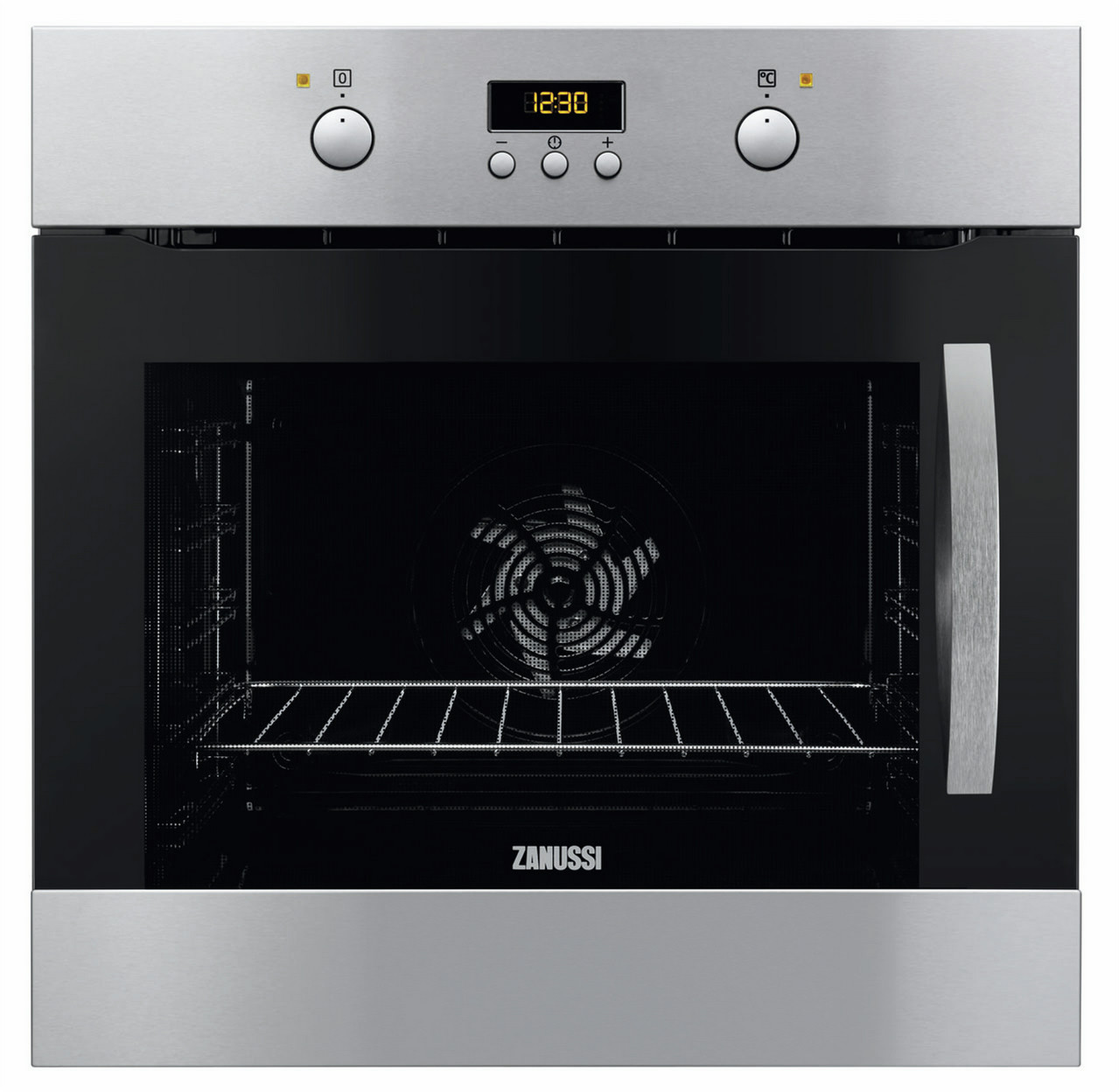 Zanussi ZOB35805XK. Oven type: Electric oven, Total oven(s) interior capacity: 74 L, Total oven power: 2780 W. Colour of product: Stainless steel, Control type: Buttons, Rotary, Control position: Front. Timer type: Digital. Energy efficiency class: A, Power consumption (typical): 2780 W. Width: 594 mm, Depth: 568 mm, Height: 594 mm