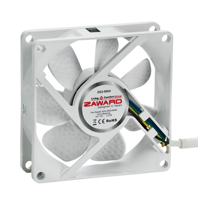 Zaward ZG2-080A. Suitable for: Computer case, Type: Fan. Colour of product: White. Dimensions (WxDxH): 80 x 80 x 25 mm