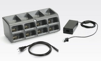 This charging kit includes 8-slot battery charger, power supply and US AC line cord for the RS507 Scanner.