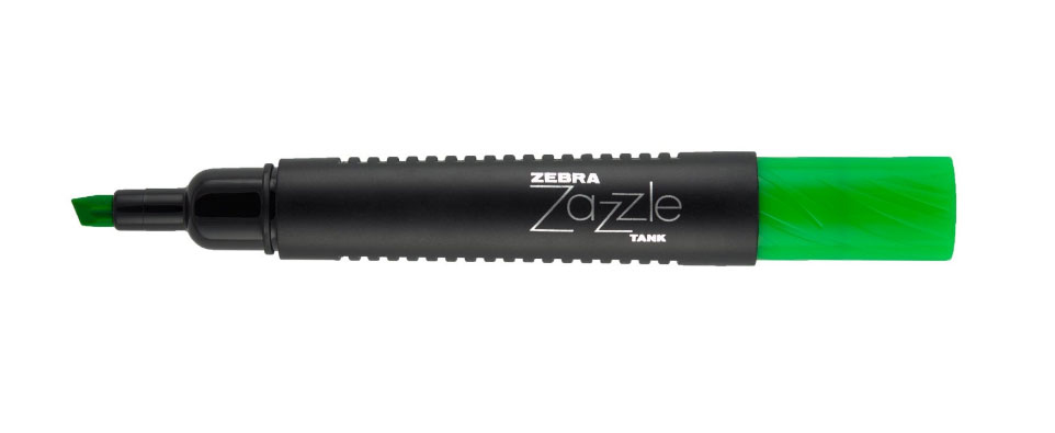 - Barrel side ridges to prevent rolling - Sleek black barrel - Zebra pattern-engraved cap