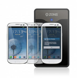 The power receiver solution is neatly integrated in the ZENS battery cover for the Samsung Galaxy S3. Simply replace the standard battery cover of the Samsung Galaxy S3 with the ZENS battery cover and the phone will work seamlessly with the ZENS wireless charging pad, at home or in the office. The ZENS battery cover with wireless charging capabilities is available in Marble White to perfectly match the color of the Samsung Galaxy S3.
