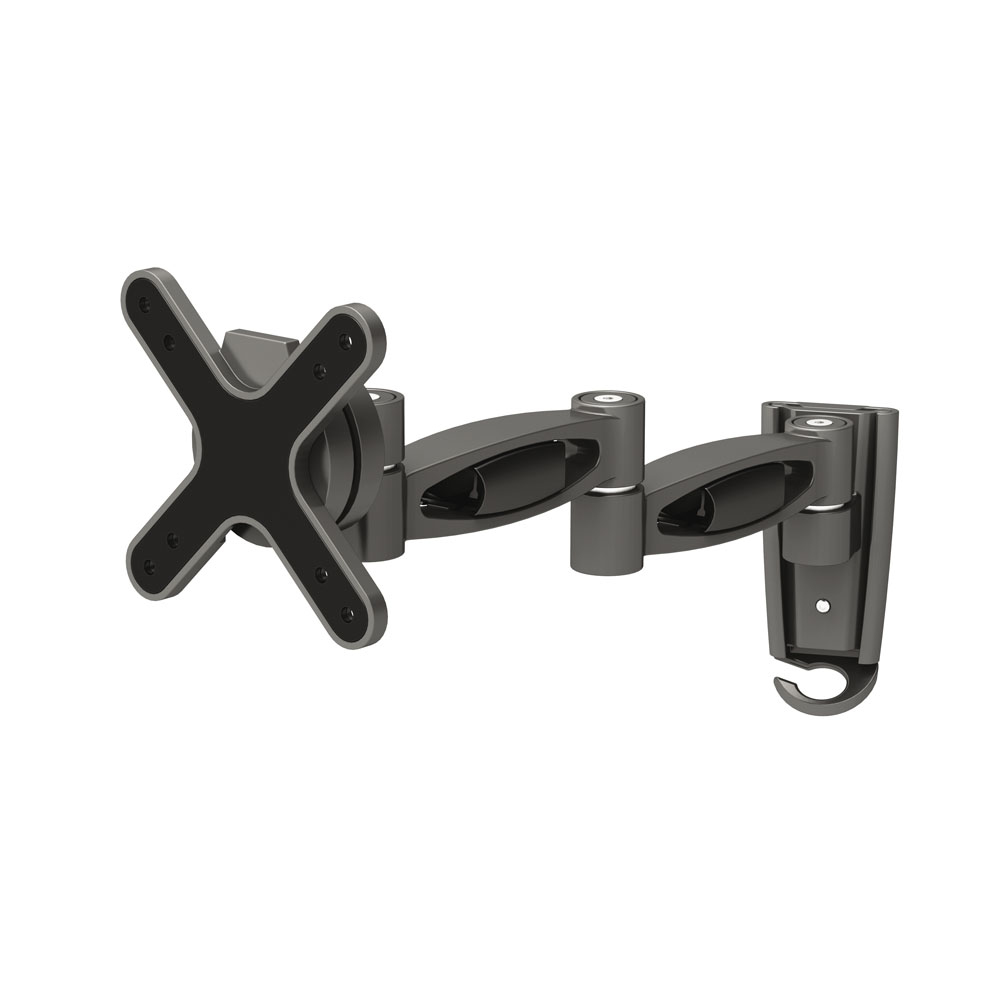 The ZIGNUM M080-23 wall mount is the ideal extension for any high-quality flat-screen TVs or larger monitors. As it has three rotation axes, it is extremely flexible and allows the TV to be rotated by up to 180° and tilted from +15° to -15°. In doing so it remains solid and stable enough to hold the TV safely at any of these angles. An integrated bubble level helps to ensure that the unit is installed horizontally.