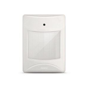 This motion detector (PIR = passive infrared receiver) detects the presence of a person in a room. The units send information to a controller or any other associated Z-Wave device.