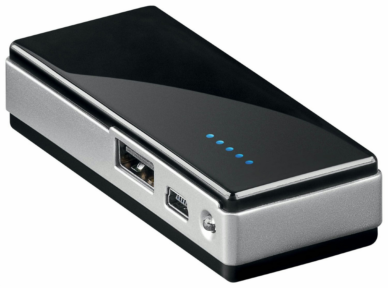 USB Power Bank S-Size 7 adapter plugs (2000mAh) Black/Silver