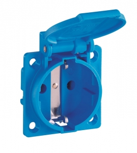 Integral socket of thermoplastic, colour black, 2-pole + earth, 16A 250V, in accordance with DIN 49440, with screw connection, IP54.