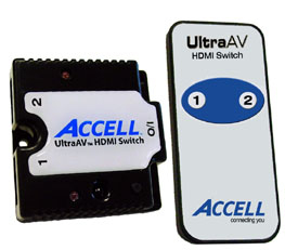 The Accell UltraAVT HDMIT 1.3 Audio and Video 2-1 Switch is designed to support all HDMI specification versions including the new HDMI 1.3a Category 2. This specification more than doubles HDMI's previous bandwidth and adds support for Deep ColorT technology and new high-definition (HD) digital audio formats. This switch supports all HD formats including 1080p and 1440p and transmits an all-digital signal providing the highest quality audio and video. Able to deliver uncompressed high-definition video and uncompressed multi-channel audio, the UltraAV Switch supports an overall bandwidth of up to 10.2 Gbps (340 MHz) for a blazing fast audio/video connection.