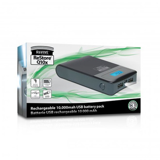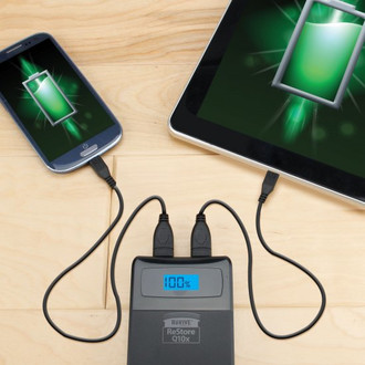 The ReStore Q10x comes with two USB ports, allowing you to charge two devices at once. With a 1A port, a 2.1A port and a micro-USB port, you can charge your smartphone, tablet, MP3 player and more! The 10,000mAh Li-ion battery is good for up to 5 charge cycles for smartphones and 2.5 cycles for tablets (NOTE: May not apply for certain smartphones and tablets). For best results, allow 10-20 hours to fully charge the power bank to 100%.