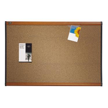 Cork bulletin board hangs documents with push pins and features high-density backing to keep your items in place. Durable and modern colored cork surface also includes a self-healing feature to prevent crumbling.
