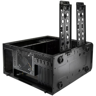 ECCO250 has been equipped with two 120mm fan slots in its front (intake) and one in its rear (rear fan is preassembled). ECCO250 has also been prepared for external water cooling with a rubber edged hole on its rear.