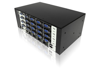The AV4PRO-VGA-MS is designed to enable four multihead computers to be controlled from a single high resolution KVM console using high definition analog VGA video links. The switch makes use of Adder's True Emulation technology which enables USB HID devices to be continuously emulated to each computer. This unique technology enables instantaneous and reliable hotkey switching whilst also supporting the extra keys and features of enhanced keyboards and mice. Furthermore, the AdderView includes two independently switchable USB 2.0 channels and an audio channel, giving the user the flexibility to attach selected peripherals to different computers. Models are available supporting single, dual, triple or quad head VGA computers.