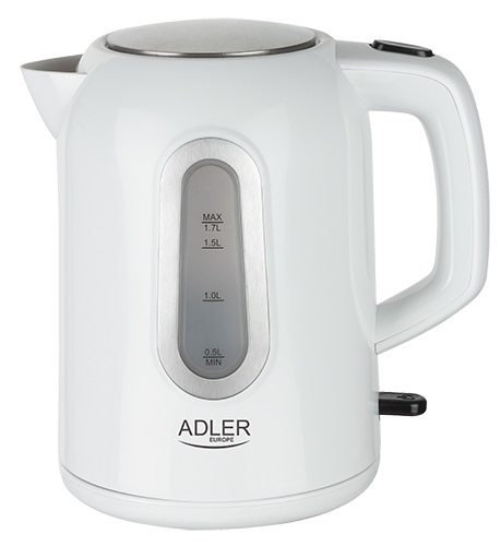 A big electric family kettle allowing to boil water for 6-7 people at one go thanks to its power of 2200W. The kettle is equipped with a bright water level indicator and automatic switch off, so it will switch off after water boils. Boil-dry protection prevents from switching on an empty kettle, what saves energy and increases the user´s safety. Moreover, a sediment filter will provide appropriate quality of water. For the user´s convenience the kettle was equipped with a 360 degree rotary base and a flat bottom. Its remarkable design does not let you forget the pleasure of having a morning cup of coffee. Under the white housing there is a heating element made of stainless steel which is resistant to being covered by sedimentation rock. A pilot light informs that water has just boiled. The kettle capacity is 1.7L.