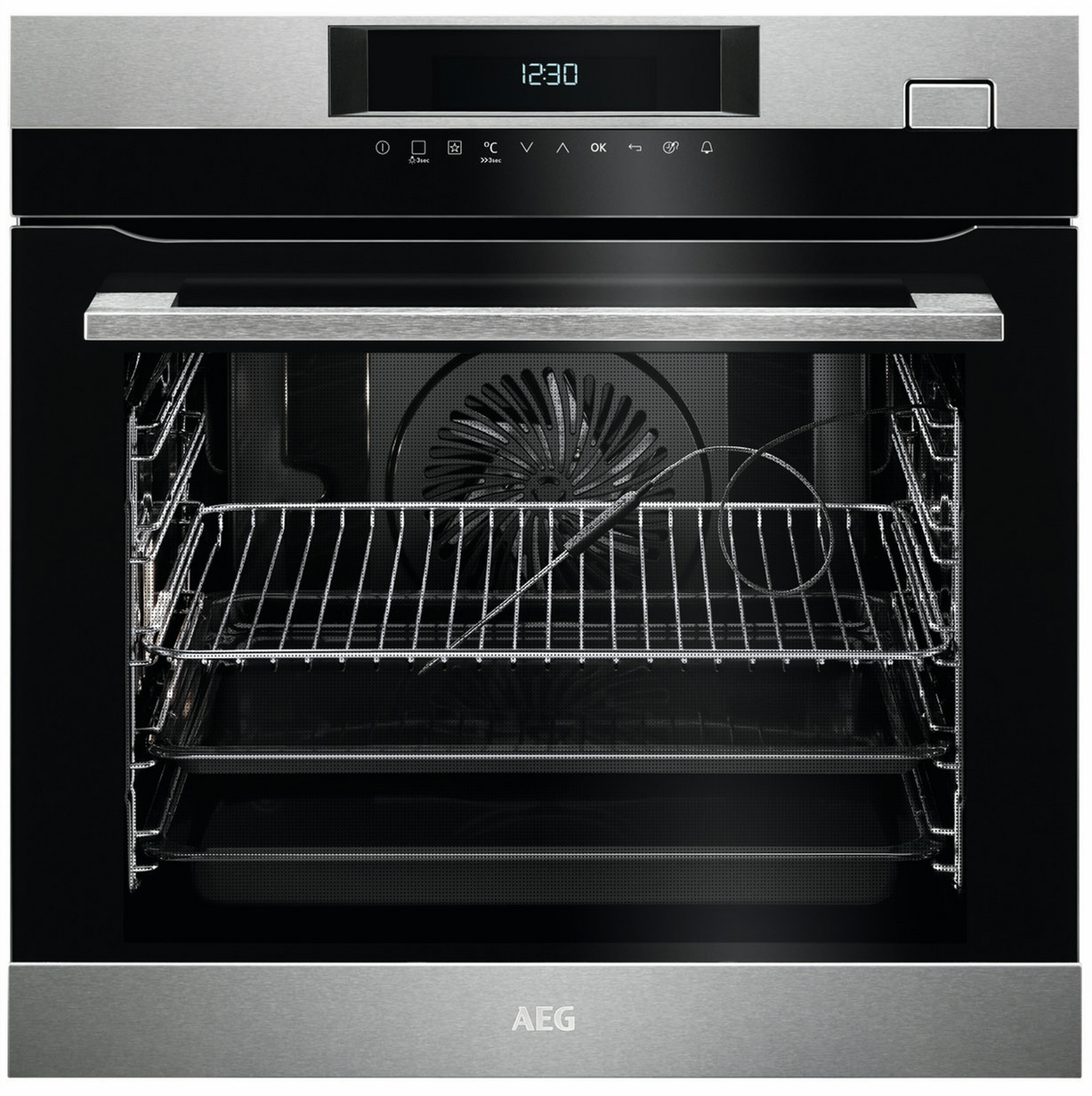 AEG BSK774220M. Oven size: Medium, Oven type: Electric oven, Total oven(s) interior capacity: 70 L. Colour of product: Black, Stainless steel, Control type: Touch, Control position: Front. Noise level: 48 dB. Energy efficiency class: A+, Energy consumption (conventional): 0.99 kWh, Energy consumption (forced convection): 0.69 kWh. Bread & dough making programs: Pizza dough