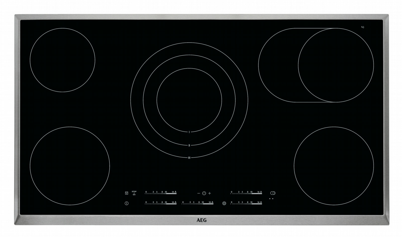 AEG HK955070XB. Case design: Built-in, Hob type: Ceramic, Top surface type: Ceramic. Control type: Sensor, Timer type: Digital, Cable length: 1.6 m. AC input voltage: 220 - 240 V. Width: 896 mm, Depth: 516 mm, Height: 38 mm