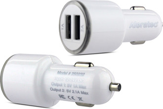 Aleratec 3.1A Dual USB Car charger let you charge two devices while you drive simultaneously. It features two charging ports: Port (1) 2.1 Amps have the juice required to charge your iPad, and other Tablet devices and Port (2) 1 Amps to charge your iPhone, iPod or other mobile devices. Compatible with standard vehicle power ports in any vehicle.