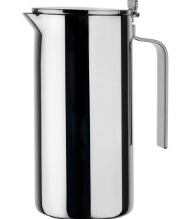 Professional objects to use at home Double wall thermo insulated jug in 18/10 stainless steel mirror polished. Designed by the finnish designer Kristiina Lassus, the jug "Adagio" meets all the functional requirements of the hotel industry regarding the object to use for breakfast: the spout, that ensures a better pouring without drips, stackable, ergonomic handle, the 180° opening of the lid; all details that make this jug a professional object. But thanks to its soft and plumb shape it's also proposed for private use.