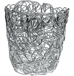 Wire citrus basket in anodized aluminium. “Nuvem” means cloud in Portuguese. It is a reference to the skein of aluminium wire, tangled and then squashed and drawn, that forms the objects in this family. It wasn't easy to find a production technology that was capable of preserving the exquisitely craftsmanlike, manual and random attributes of this concept by the Campana brothers, while simultaneously allowing it to be produced at reasonable prices. The result is an example of what we call "lightness and consistency", values that feature highly in the work of these Brazilian talents.