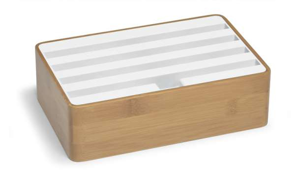 ALLDOCK of Bamboo wood. Size: medium. Smartphone, tablet or camera - all together in stylish ALLDOCK charging station. With its high-speed USB hub and its comprehensive features, it is suitable for virtually any digital device. Thanks to its simple design, traditional craftsmanship and variety of materials, it fits perfectly on your favorite places in your home or office.