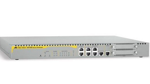The AR750S is a very high performance firewall and VPN concentrator offering up to 192Mbps of IPSEC throughput. Dual Ethernet WAN ports and two Port Interface Card (PIC) bays create a very flexible WAN router. The Stateful Inspection Firewall makes the AR750S suitable for secure routing applications.