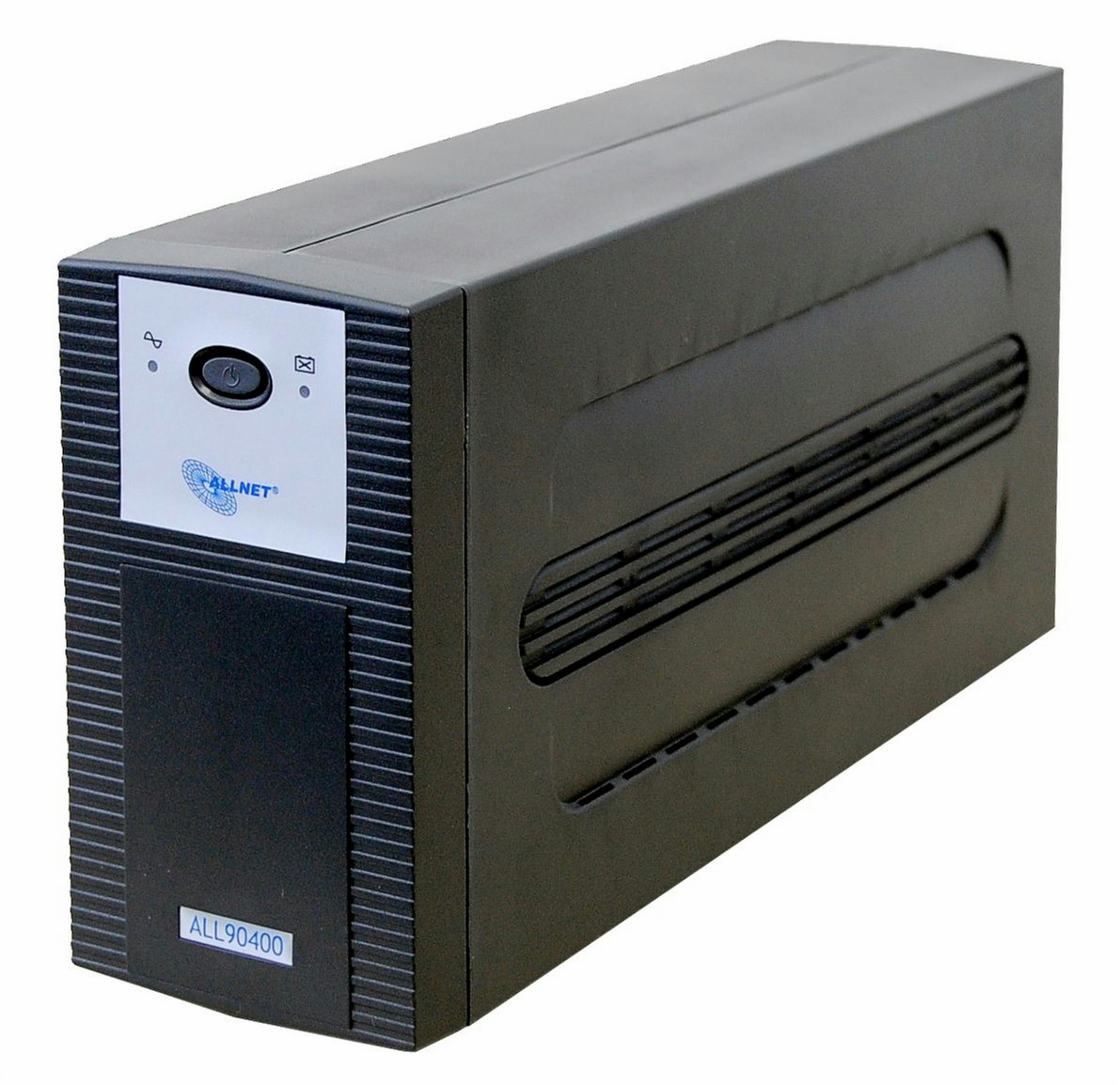 ALLNET USV 400VA. Output power capacity: 400 VA, Output power: 225 W. Battery technology: Sealed Lead Acid (VRLA), Battery recharge time: 7 h. Colour of product: Black. Dimensions (WxDxH): 171 x 95 x 357 mm, Compatible operating systems: MS-Windows 95/98/2000/2003/ME/XP/NT, Vista