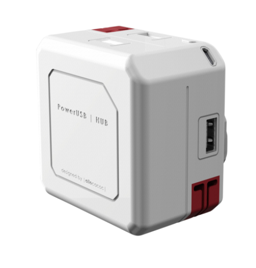 The battery is recharged when connected to a USB port, and recharges even faster when the PowerBank |HUB| is plugged into a power socket.