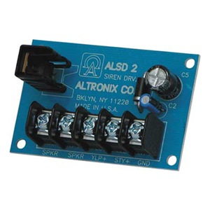 Model ALSD2 is a high output very low current draw dual channel siren driver designed to work with alarm panels with limited current capability.