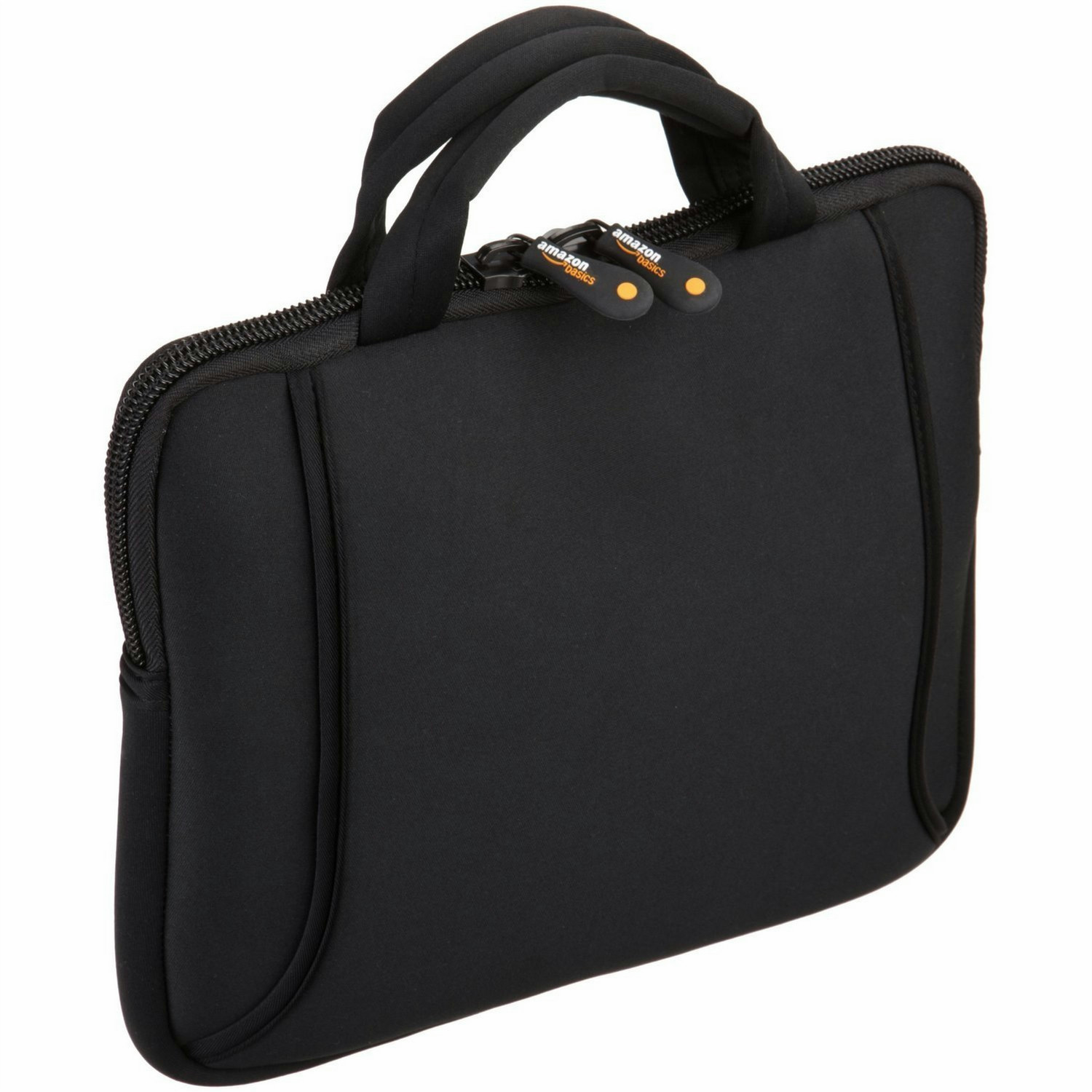 Convenient, comfortable, and easy to carry, the AmazonBasics Netbook Bag is a slim case designed to protect your electronics. Featuring a durable, weather-resistant Neoprene cover, this netbook bag helps cushion and protect mini laptops, netbooks, DVD players, Amazon Kindle, and more. Its customized design and padded handles let you tote your electronic device comfortably so it's ideal for students, travelers, and all on-the-go technology users. It includes additional storage space easily accessed through the front zipper for cables and other accessories.
