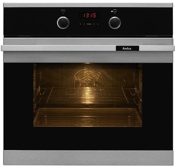 Amica TEF1532. Oven type: Electric oven, Total oven(s) interior capacity: 60 L, 1st oven interior capacity: 60 L. Colour of product: Stainless steel, Control type: Rotary, Control position: Top front. Energy efficiency class: A, Power consumption (typical): 2900 W, Bulb power: 25 W. Width: 595 mm, Depth: 575 mm, Height: 595 mm