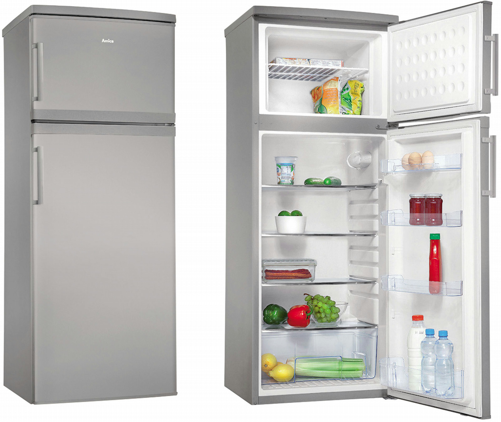 Amica VD 1441 BX. Case design: Freestanding, Colour of product: Stainless steel, Door hinge: Right. Total net capacity: 205 L, Climate class: ST, Noise level: 40 dB. Fridge net capacity: 160 L. Freezer position: Top-placed, Freezer net capacity: 45 L, Freezing capacity: 2 kg/24h. Energy efficiency class: A+, Annual energy consumption: 215 kWh