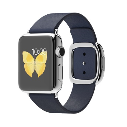 38mm, Retina display, S1, Wi-Fi, Bluetooth, watchOS 1, Stainless Steel Case, Midnight Blue Modern Buckle, S