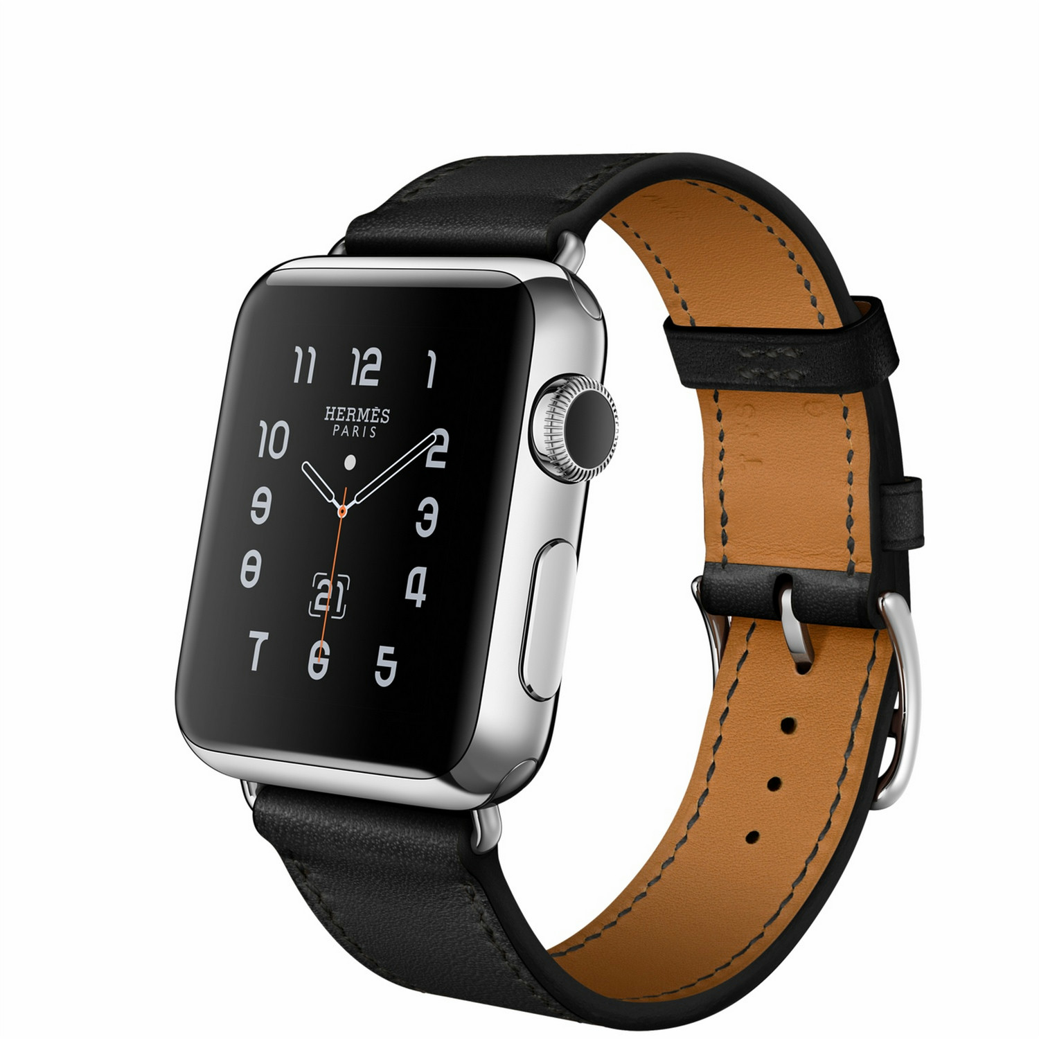 38mm, Retina display, Force Touch, S1, Wi-Fi, Bluetooth, watchOS 2, Single Tour, Stainless Steel Case, Noir Leather Strap Uncompromising craftsmanship. Pioneering innovation. Groundbreaking functionality. Apple Watch Hermès is the culmination of a partnership based on parallel thinking, singular vision and mutual regard. It is a unique timepiece designed with both utility and beauty in mind. With leather straps handmade by Hermès artisans in France and an Hermès watch face reinterpreted by Apple designers in California, Apple Watch Hermès is a product of elegant, artful simplicity — the ultimate tool for modern life.