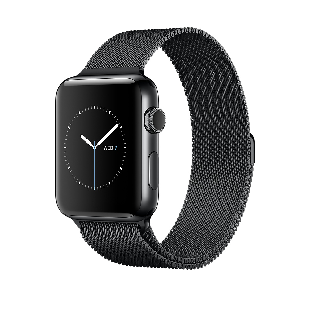Watch Series 2, 42mm, OLED Retina display, Force Touch, S2, 802.11b/g/n, Bluetooth, watchOS 3, Space Black Stainless Steel Case, Space Black Milanese Loop