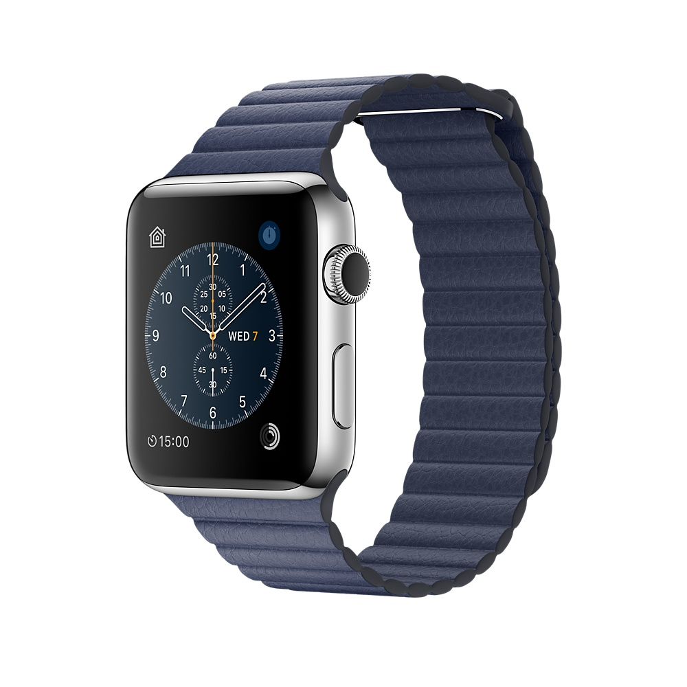Watch Series 2, 42mm, OLED Retina display, Force Touch, S2, 802.11b/g/n, Bluetooth, watchOS 3, Stainless Steel Case, Midnight Blue Leather Loop, M Introducing Series 2.