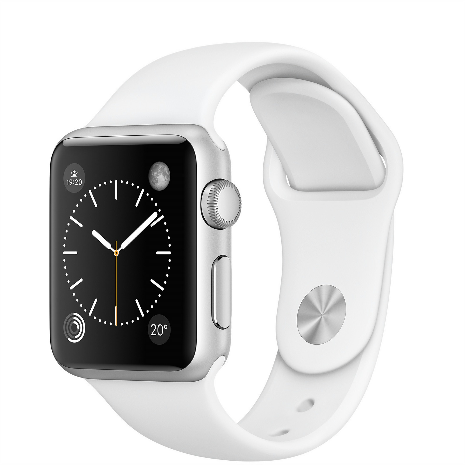38mm, Retina display, Force Touch, S1, Wi-Fi, Bluetooth, watchOS 2, Silver Aluminium Case, White Sport Band