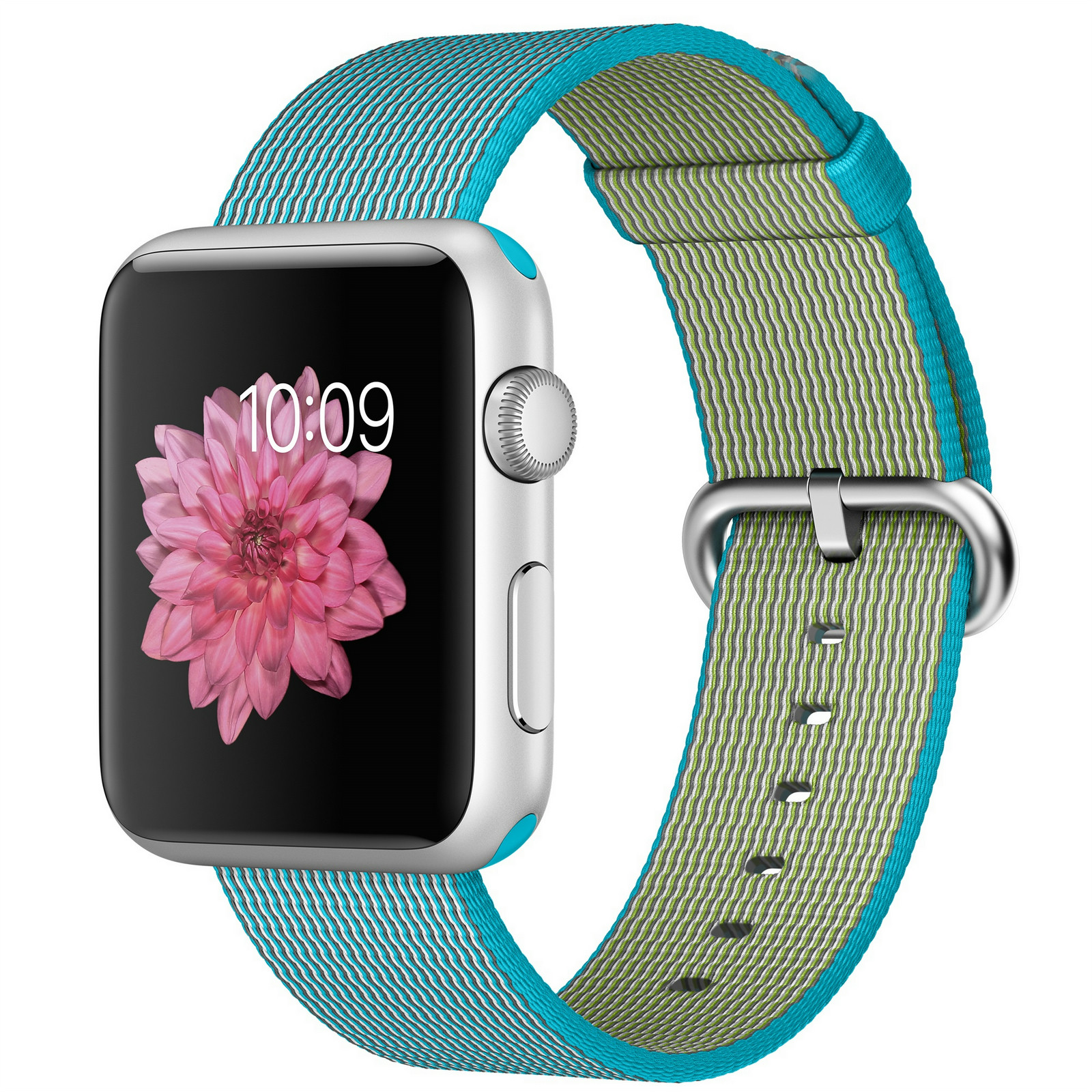 42mm, Retina display, Force Touch, S1, Wi-Fi, Bluetooth, watchOS 2, Silver Aluminium Case, Scuba Blue Woven Nylon Band
