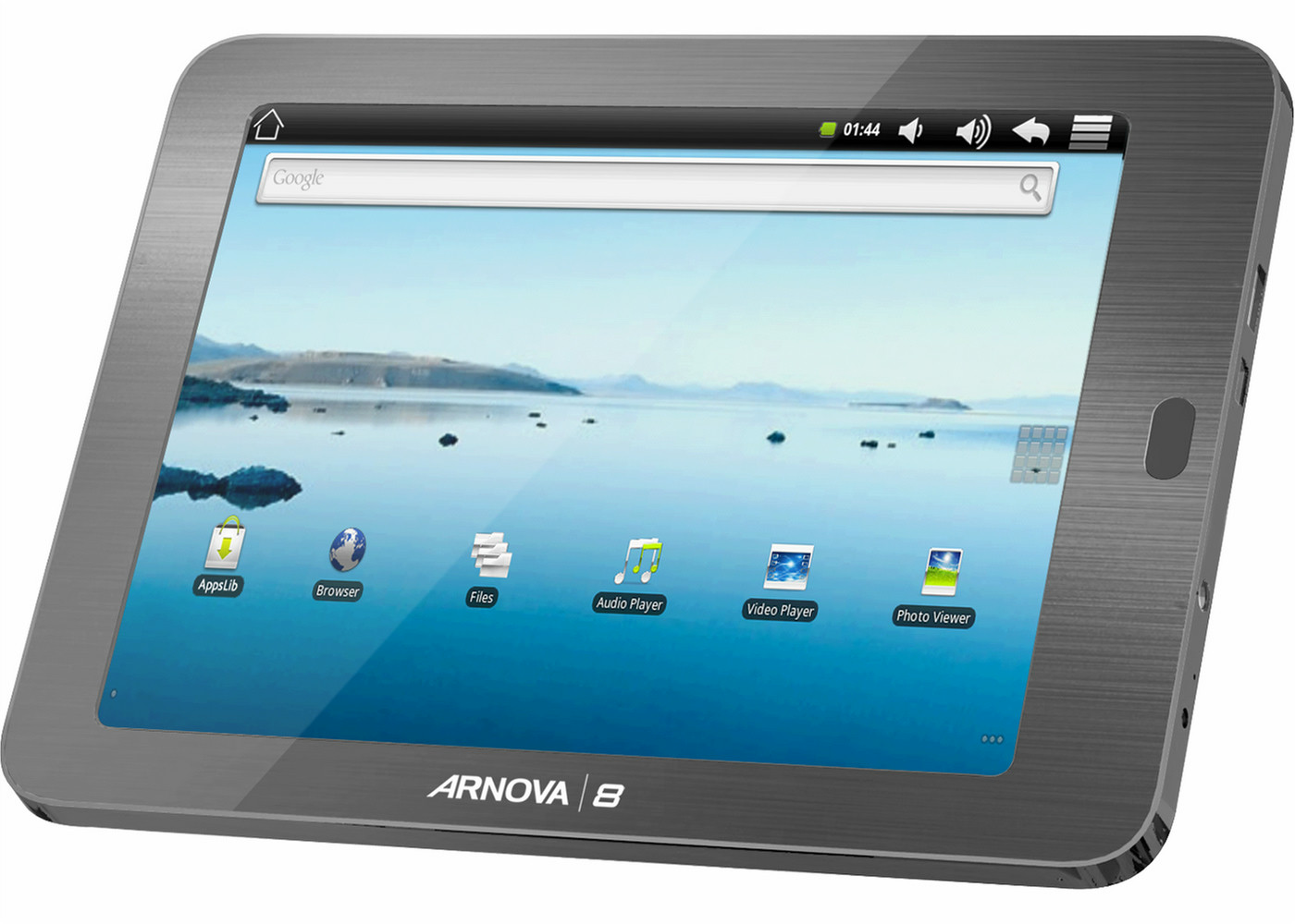 Arnova 8, 4 GB Flash, microSDHC, TFT LCD 8" 800 x 600 4:3, 802.11 b/g, USB 2.0, Android 2.1 (Eclair)
